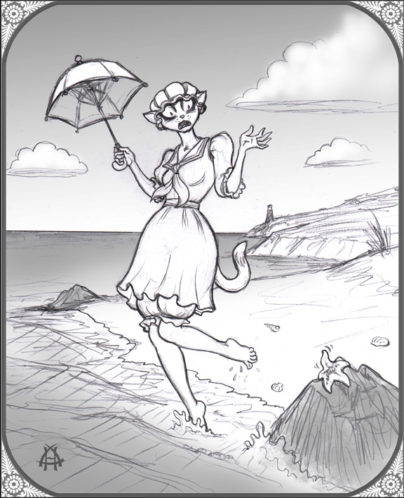 Week 29 “The Portswich Horror”: A scandalous image of a helpless maiden, menaced by a tentacled beast while she bathes. |