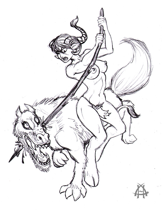 Week 43 “Lyca’s Wolf”: We see a young Lyca in her first encounter with the anatomically improbable Gyre Wolves of the demonic realm she calls home. |